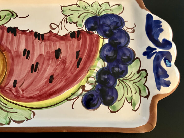 Beautiful glazed earthernware tray with chipped bottom edge and corner © Dianna Huff